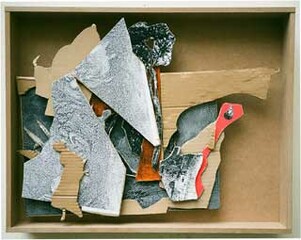 Die Turner Boxes verzichten vollends auf Malerei und setzen ausschließlich analoge sw Fotokopie und Kartonreste in Assemblagen um. Inspiriert von John Mallord William Turner Schiffsuntergangsszenarien, erinnern sie an digital gescheiterte Landschaften, in der Ästhetik von sw Fotokopie. Bei der „multituned" Serie arbeite ich mit Fundstoffen und Stickereien aus dem nahegelegenen bäuerlichen Elternhaus in Rehdorf. Als handcolorierte sw Fotokopie finden sie wieder in den Kreislauf des Visuellen zurück. Der Rest sind Farbreisen.