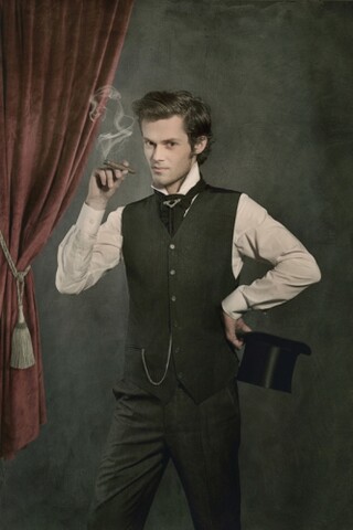 "Die Künstlerin Katarzyna Niwińska aus Krakau erzählt uns den – schon vielfach verfilmten sowie als Theaterstück, Musical und sogar als Comic adaptierten – Klassiker in aufwändig inszenierten Fotografien, die sie nachträglich digital bearbeitet. Der aus 19 Bildern bestehende Zyklus beginnt und endet mit dem Bildnis des Dorian Gray, dazwischen wird die Handlung aufgespannt, in der sich charakterisierende Einzelporträts der Hauptprotagonisten befinden. Die studierte Fotografin und Grafikdesignerin illustriert mit ihren Fotoinszenierungen den Roman, so dass man meint, Filmstills aus einer neuen, noch nicht veröffentlichten Verfilmung vor sich zu haben bzw. sich direkt ans Ende des 19. Jahrhundert – der Roman erschien 1890/91 – versetzt fühlt. Vor allem die prachtvollen Kostüme, die der zeitgenössischen Gewandung des 19. Jahrhunderts nachempfunden sind, aber auch die weitere detailreiche Ausstattung, Bildzitate und die eigenwillige Licht- und Farbregie verstärken den Effekt." (Anke Schlecht, M.A.)