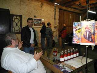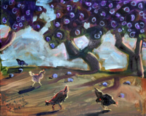 Auf seinen Reisen über die Welt und auch zu Hause in Franken entstehen Bilder in satten Farben von Idyllen an unerwarteten Orten als klassische Freiluftmalerei. Mit expressionistisch breitem Pinselschlag wird vordergründig Banales bildwürdig wie etwa der Imbisstand im Freibad von Streitberg, eine Tankstelle in Goa, ein Wasserfass im Obstgarten oder - Sinnbild für „Hier ist wirklich üüüberhaupt nichts los" - gelangweilt pickende Hühner mitten auf der Straße in der Provinz, wo auch immer sich diese Provinz befindet. Provinz ist der experimentelle Freiraum, der sich dem Künstler bietet, und den dieser nutzt. Und ist nicht Provinz auch immer das, was man daraus macht?........"
