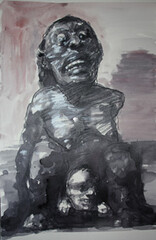 Die Palette der Emotionen reicht in Faragós Fall von Amüsement bis zu Betroffenheit. Amüsant kommen auf den ersten Blick zum Beispiel seine von Hunden dargestellten Flaneure auf dem „Boulevard der vornehmen Rasse" daher, die sich artig grüßen oder hochnäsig im Frack einherstolzieren. Die Szenerie wirkt jedoch umso bestürzender, je mehr man sie im Kontext der gesamten Ausstellung sieht. Wenn man sich beispielsweise bewusst macht, dass dieses Bild neben einer kleineren Zeichnung hängt, die aufeinander gestapelte Schuhe zeigt. „Übriggebliebene", heißt diese Arbeit. Diese Schuhe haben ehedem sicherlich nicht Vertretern der „vornehmen Rasse" gehört. Das Menetekel von Auschwitz wird hier aufgerufen, ohne es explizit zu zeigen.