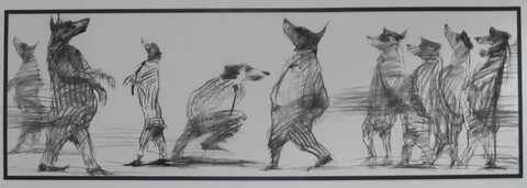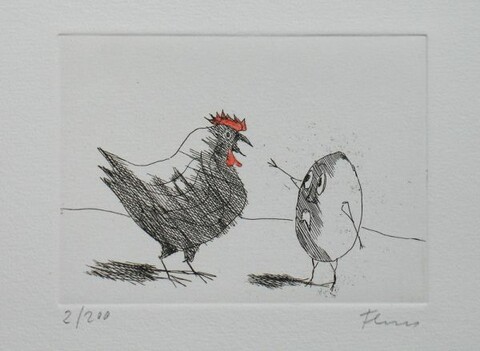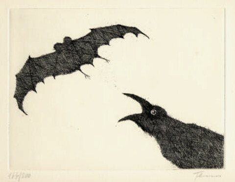 „..Die Zeichnungen von Paul Flora erinnern in ihrer oft ein wenig schroffen Geradlinigkeit an die eigenwillig-handfeste Persönlichkeitsstruktur dieses großen Künstlers, aber auch an die Natur der Tiroler Bergwelt, der sein Denken und Tun entstammte. Ähnliches gilt für Béla Faragó, den zupackenden Macher, in dessen Kunst allerdings etwas von der grüblerischen Melancholie der ungarischen Tiefebene zu lebe und zu weben scheint. Die ebenso elegante wie expressive Form seiner Zeichnungen und Malereien kontrastiert häufig mit eher befremdlichen, geheimnisvoll symbolischen Anspielungen. Er habe sich stets "einen Blick für den normalen Wahnsinn" bewahrt, hat der österreichische Zeichner und Schriftsteller Fritz von Hermanovsky-Orlando einmal gesagt. Eine Aussage, der sich Bela Faragó sicher anschließen kann. Doch anders als bei Herzmanovsky, der im Lauf der Zeit selbst immer abseitiger wurde, wird bei Faragó das sehr reale Dunkel, wird der permanente Alptraum aus Dummheit und Bösartigkeit seit Jahrzehnten mit anhaltender Besonnenheit registriert und mit durchaus kritischer Absicht dokumentiert. Was die werkimmanente Kritik anlangt, unterscheidet er sich übrigens eindeutig von Paul Flora, der in dieser Hinsicht zeitlebens keinerlei Ambitionen entwickelte. Aber natürlich ist auch Faragó kein Agitator, kein "großer Wegweiser", kein Weltenretter mit dem vermeintlich unfehlbaren Patentrezept, aber er ist zweifellos ein Moralist, einer von den wenigen Passagieren auf unserem gemeinsamen Narrenschiff, die trotz alledem an die nicht nur theoretische Möglichkeit von Anstand, Würde und sozialer Gerechtigkeit als Basis des gesellschaftlichen Zusammenlebens glauben. Faragós wacher Blick auf das Irrationale und Närrische spiegelt eben gerade NICHT eine (wie auch immer geartete) Lust am Nächtlichen, am Perversen und Apokalyptischen, wie das der selbstgerechte, selbstzufriedene Bürger in der Regel allzu schnell zu glauben scheint. Faragós Bilder sind vielmehr gemalte und